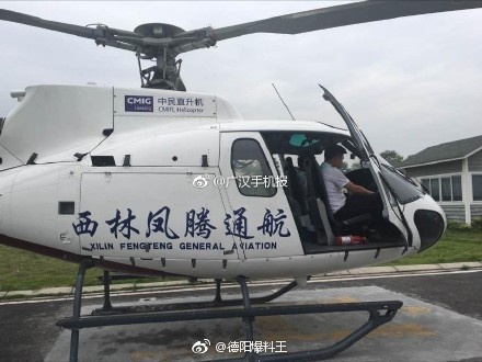 ?? 6月24日,德陽及廣漢市領導搭乘西林鳳騰直升機為茂縣受災群眾送去藥品等救災物資 。